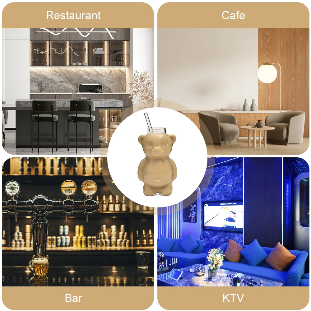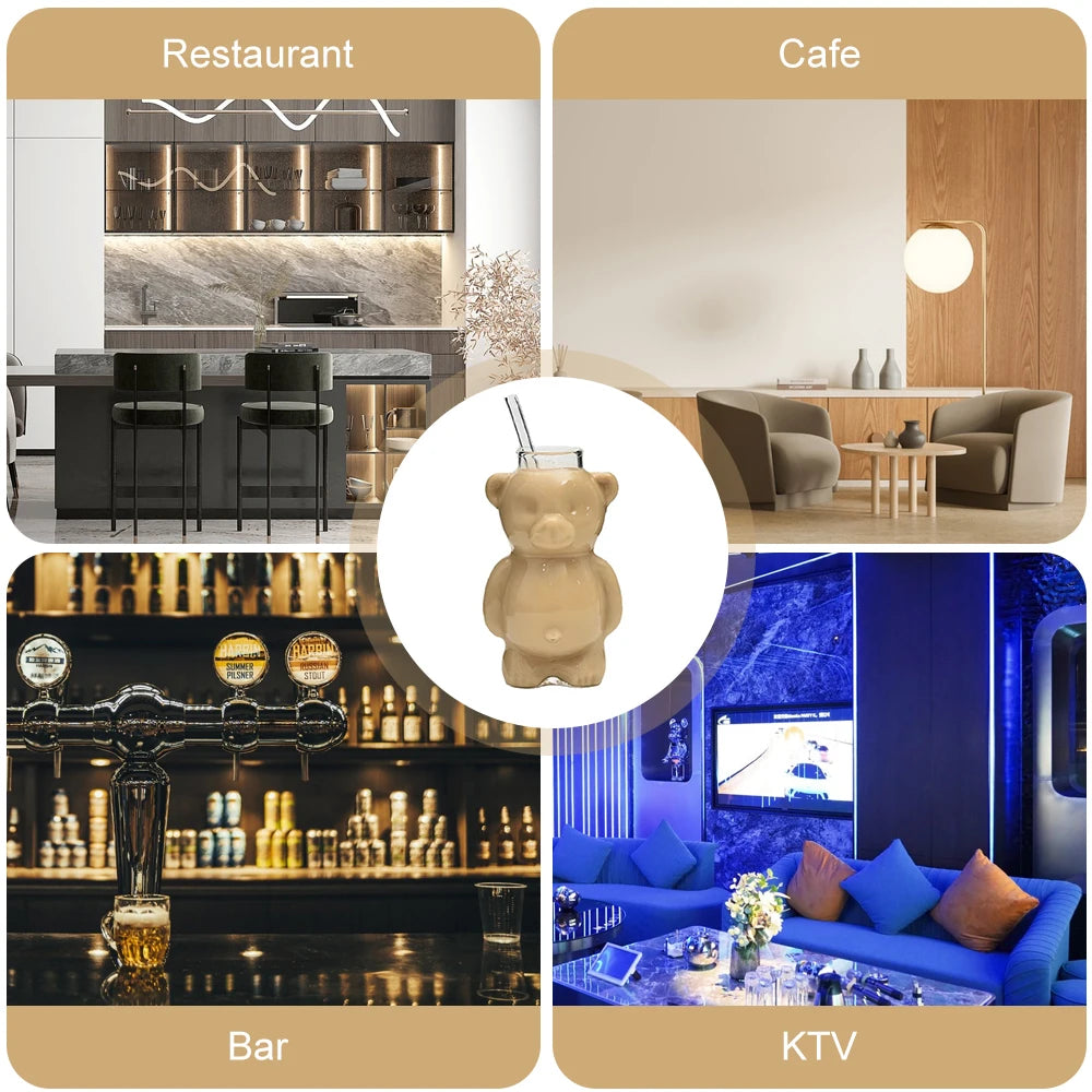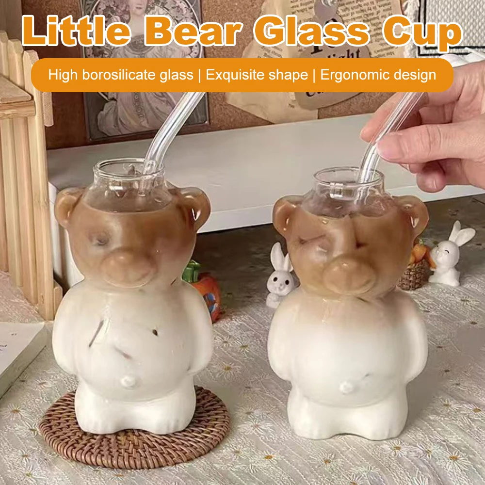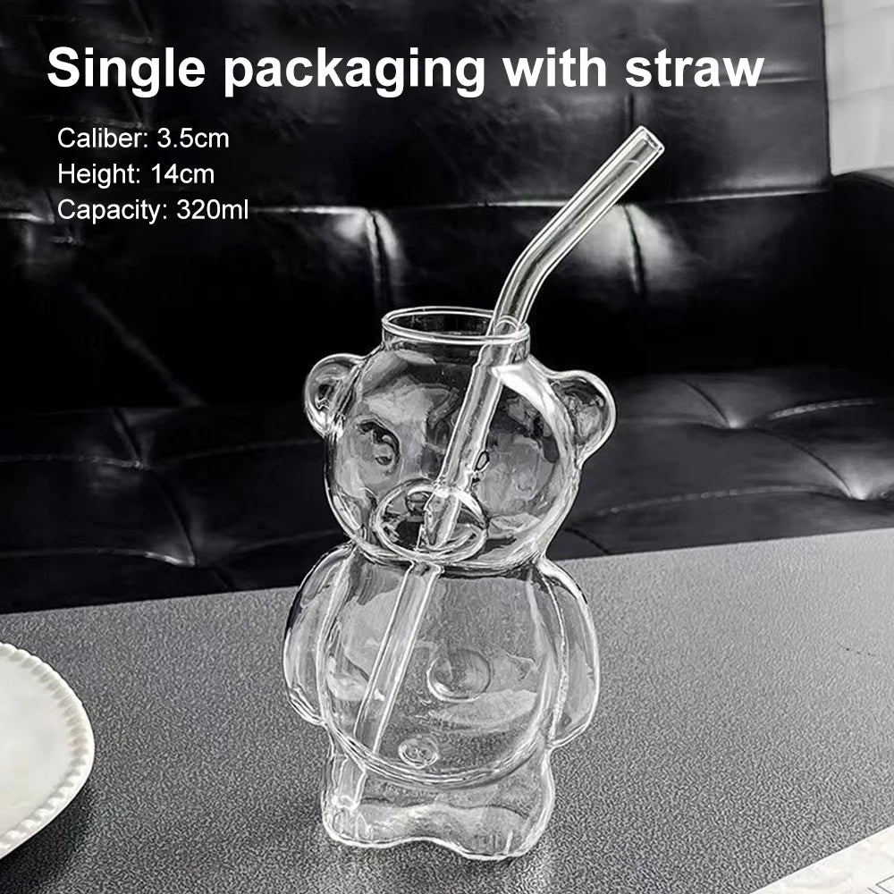 320ML Bear Shaped Glass Cup with Straw Transparent Coffee Mug Wine Glass Milk Tea Cup for Home Party Bar Restaurant Xmas Gift