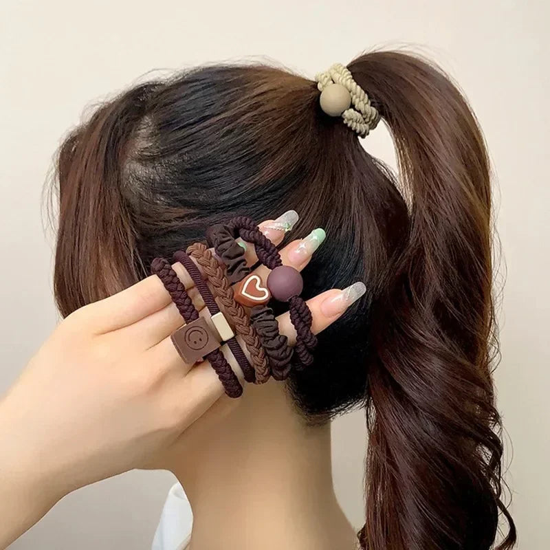 5PCS Women's Hair Ring Set Hair Accessories High Elasticity Leather Band Simple Temperament High Ponytail Durability New Style