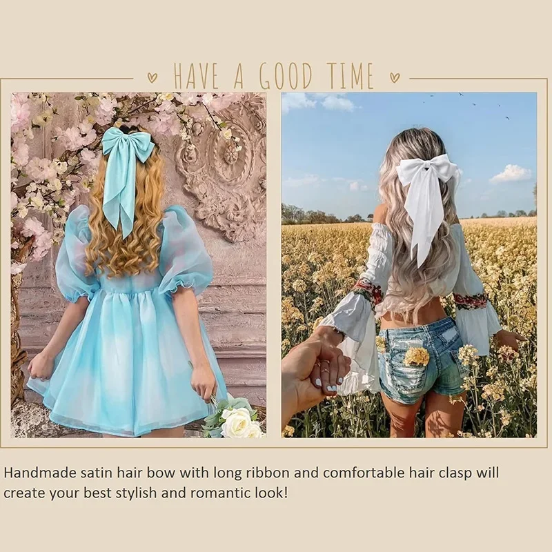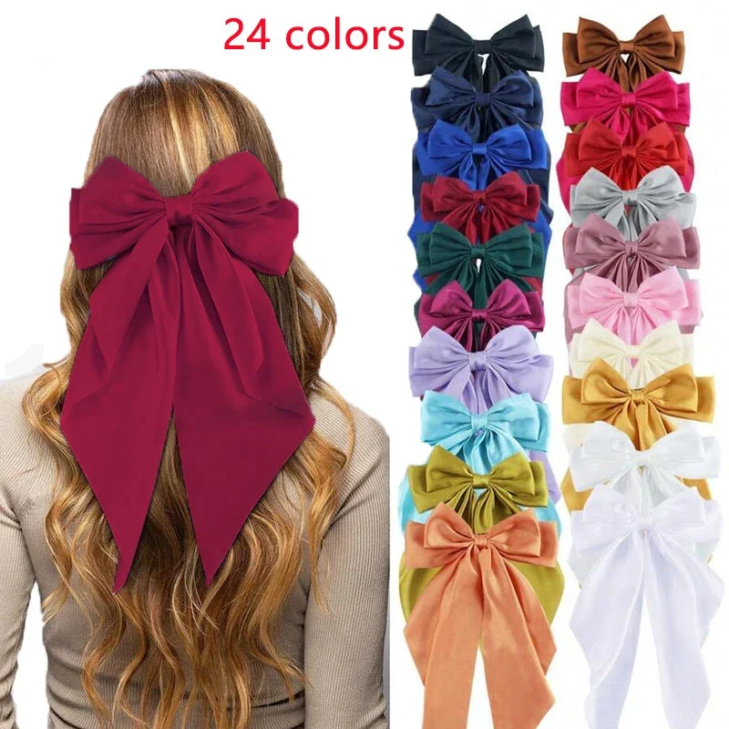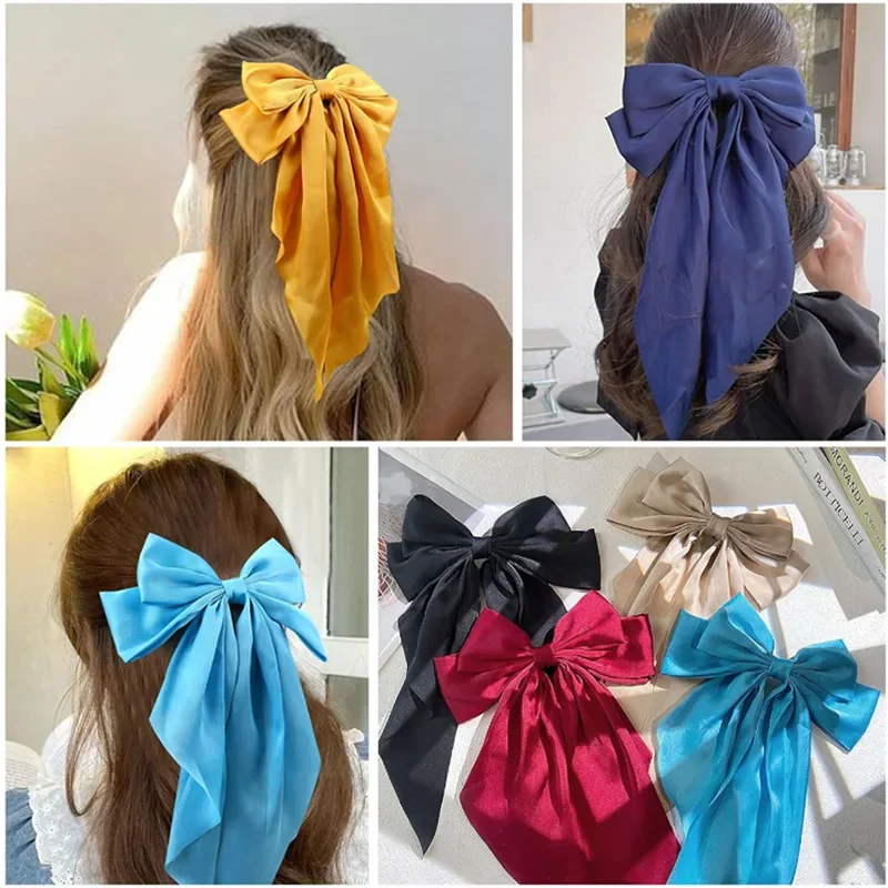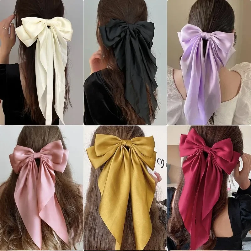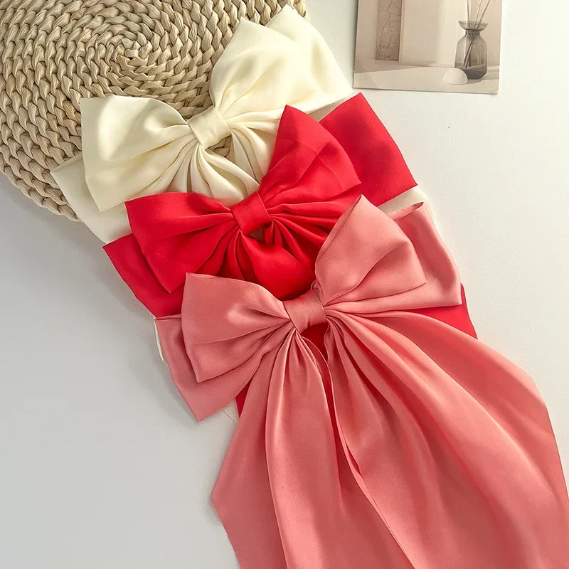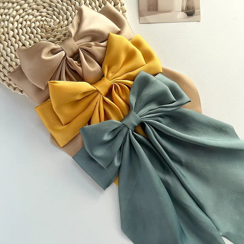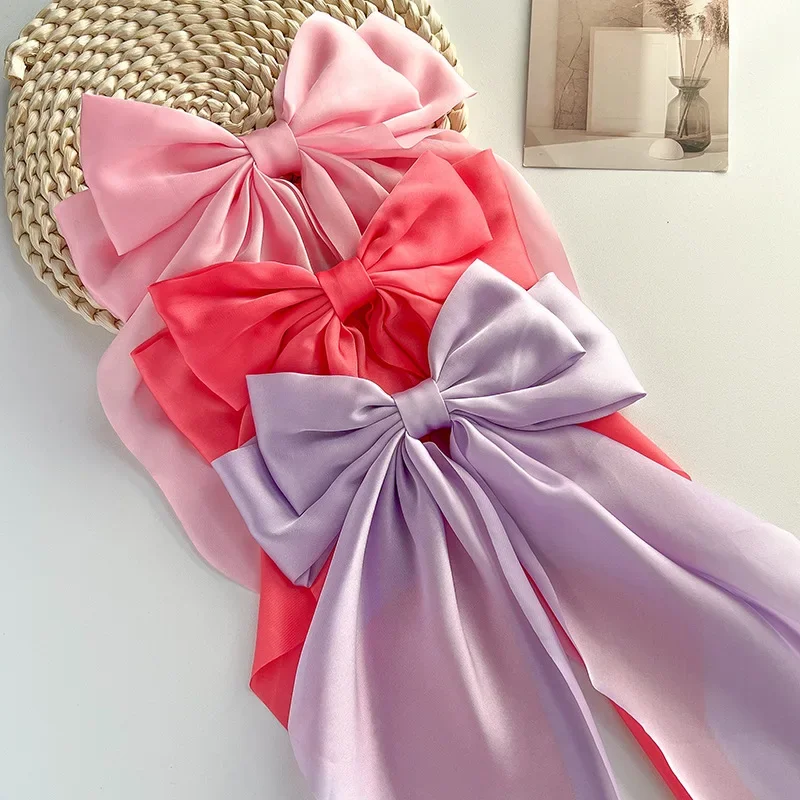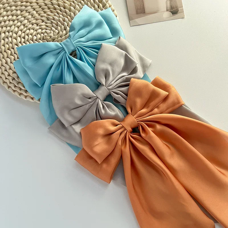 Bow Ribbon Hair Clip Women Solid Color Satin Ribbon Long Big Bows Hairpin Bowknot Barrettes Hair Accessories For Girls