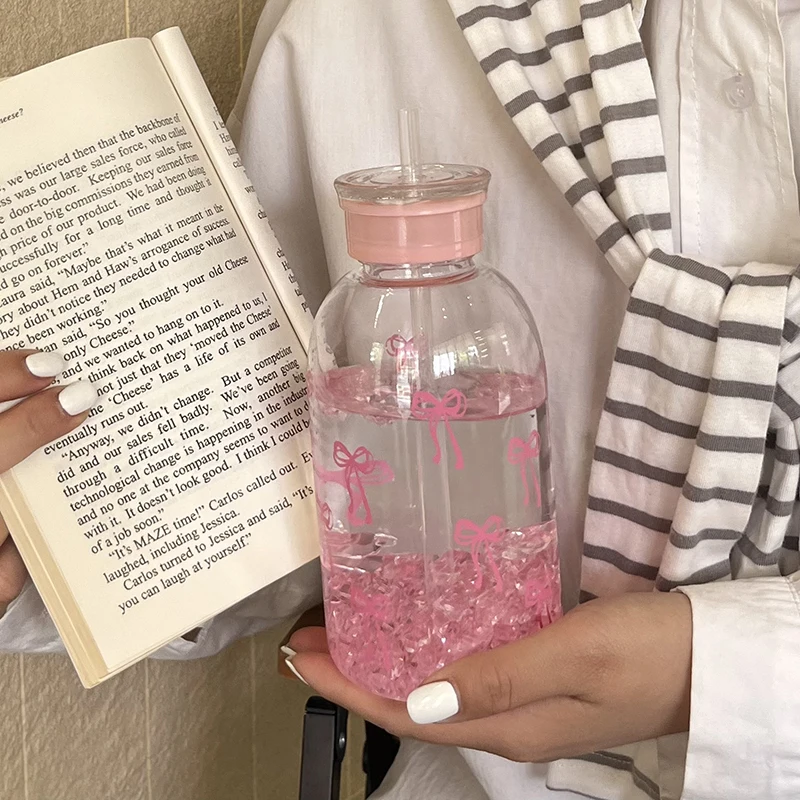 Cute Bowknot Plastic Cups With Straw Lid Portable Drinking Bottle Kawaii Water Bottle Aesthetic Tumbler For Ice Coffee Juice Tea