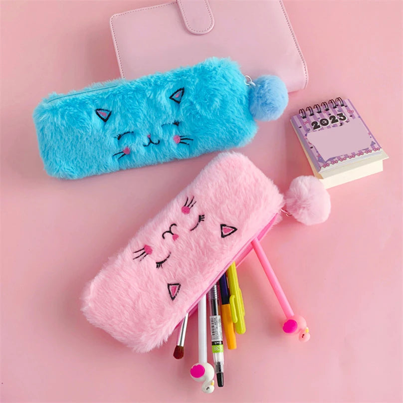Cute Cat Pencil Case Plush Pencil Cases For Girls Trousse Scolaire Soft School Supplies Estuche Escolar Stationery Pencil Pouch