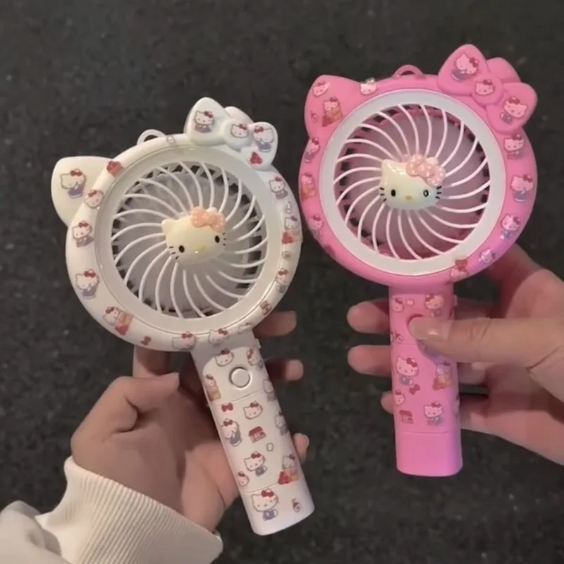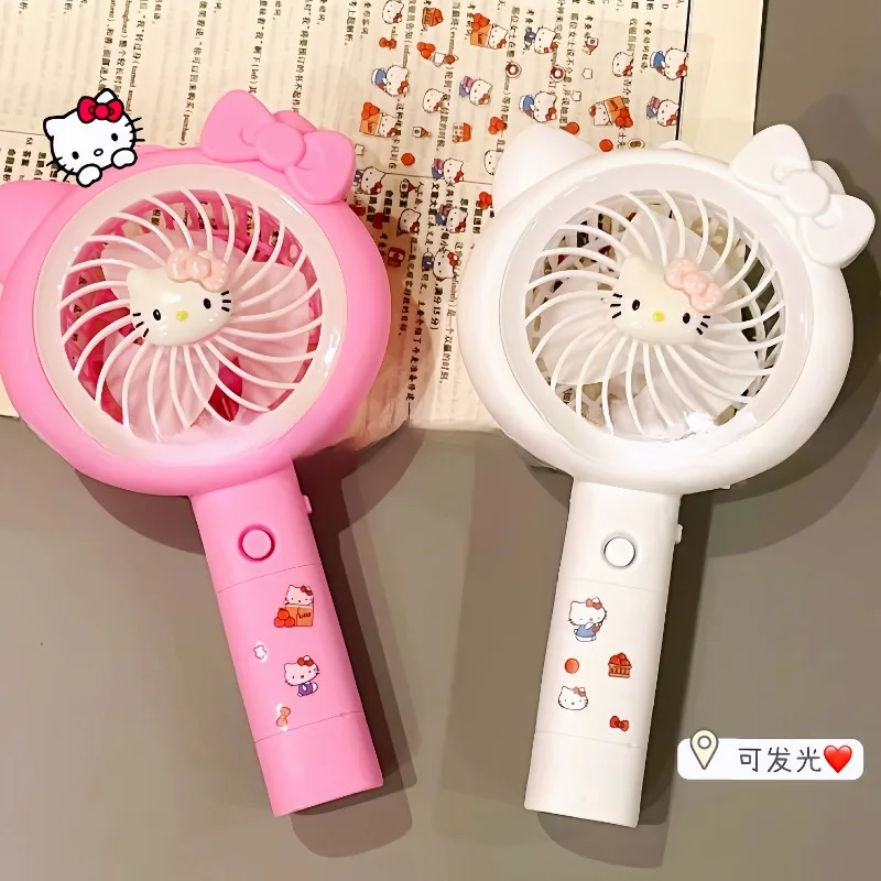 Kawaii Hello Kitty Small Fan with Light Anime Kt Cute Cartoon USB Charging Fan Travel Portable Handheld Fan Toys Girls Kids Gift