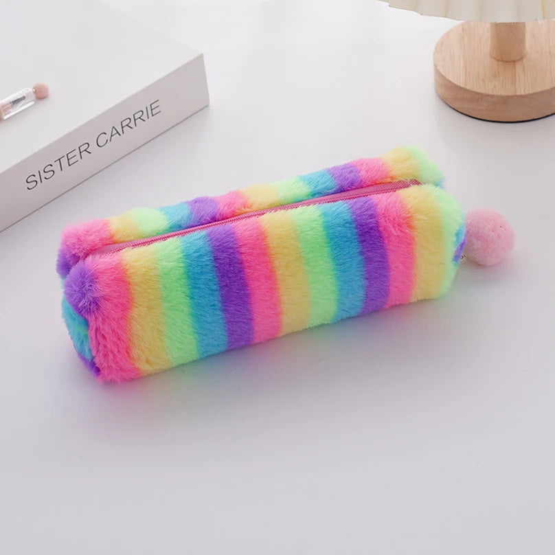 Rainbow Pencil Case Plush Estuches Escolares Pencilcase Gradient Color Large Capacity Kalemlik School Supplies Pencil Pouch
