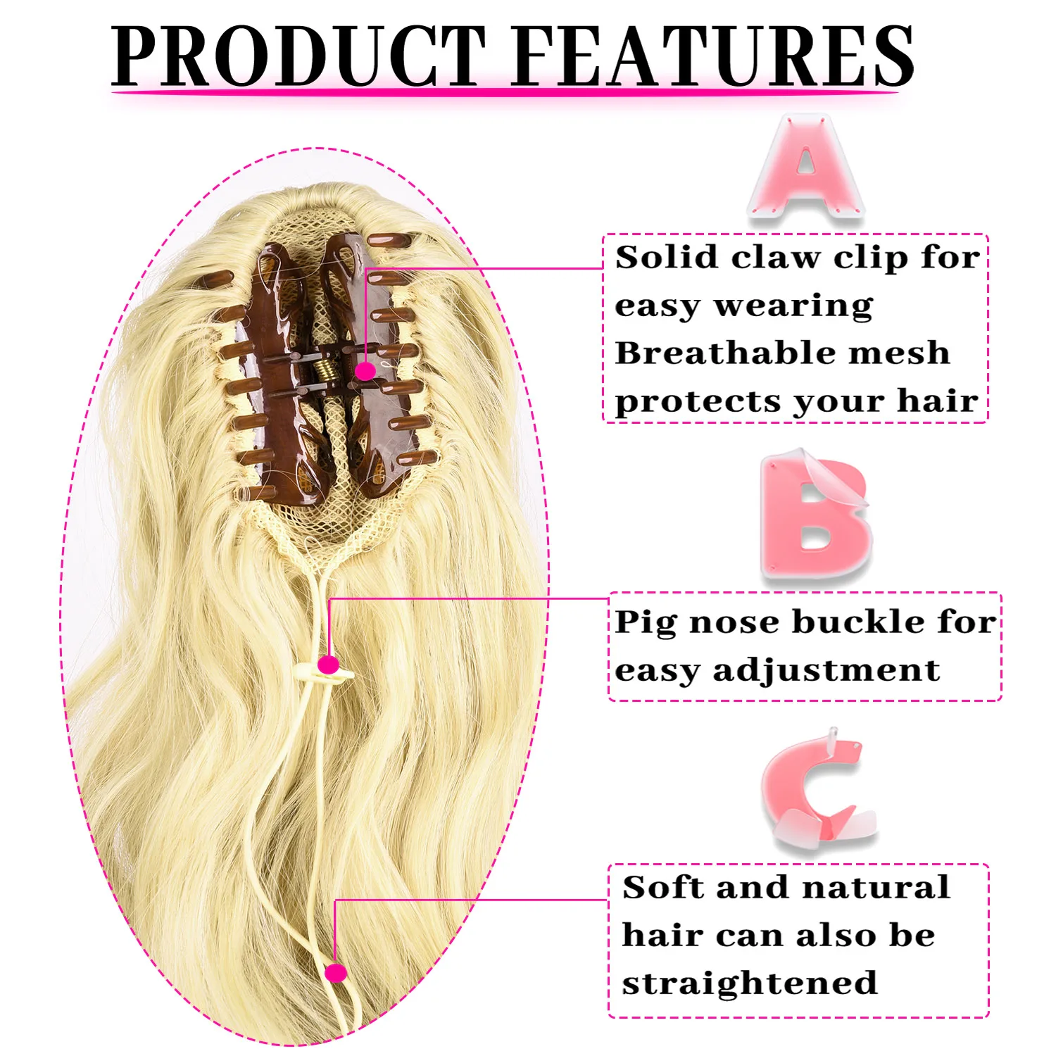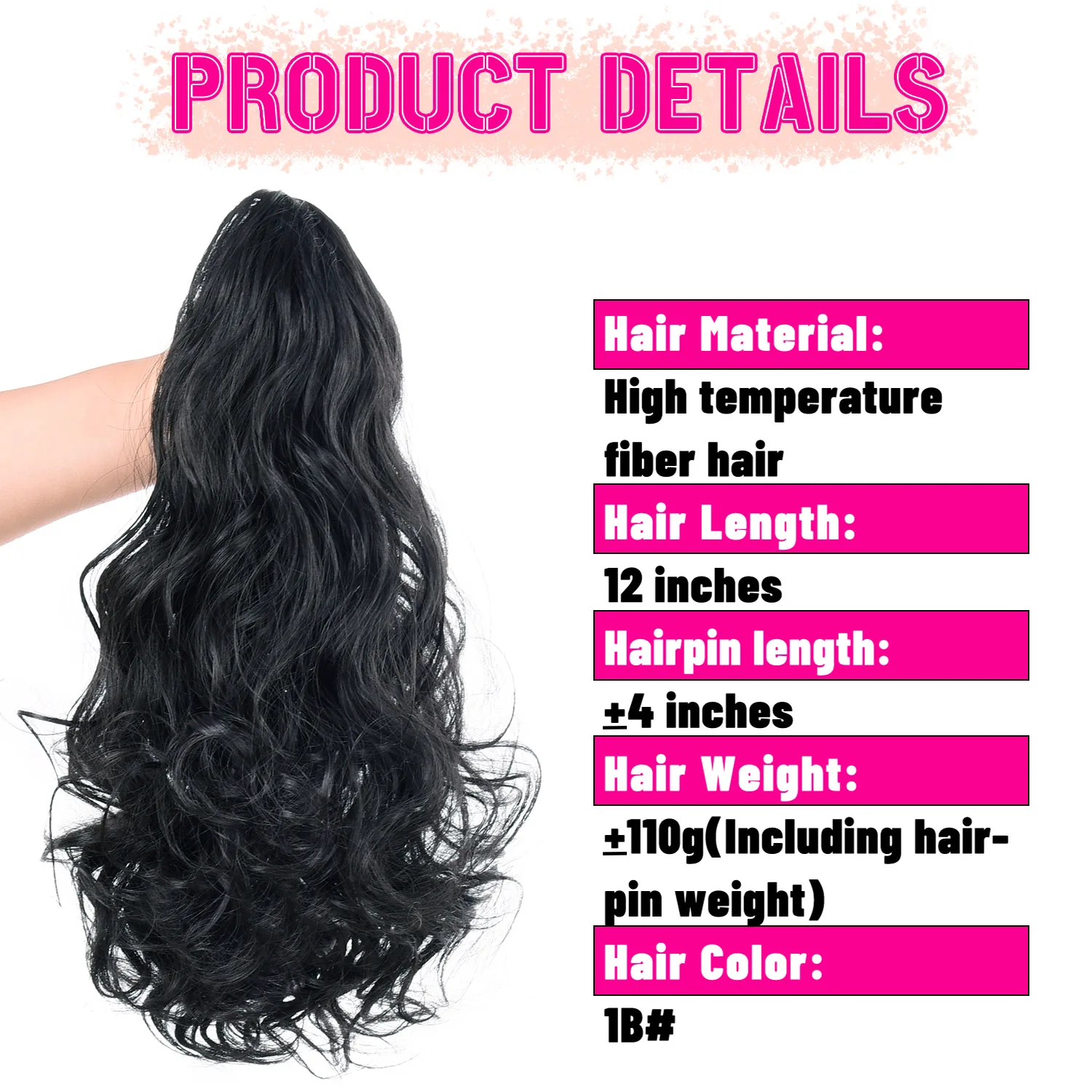Material: Claw Clip in ponytail made of premium quality synthetic fiber.